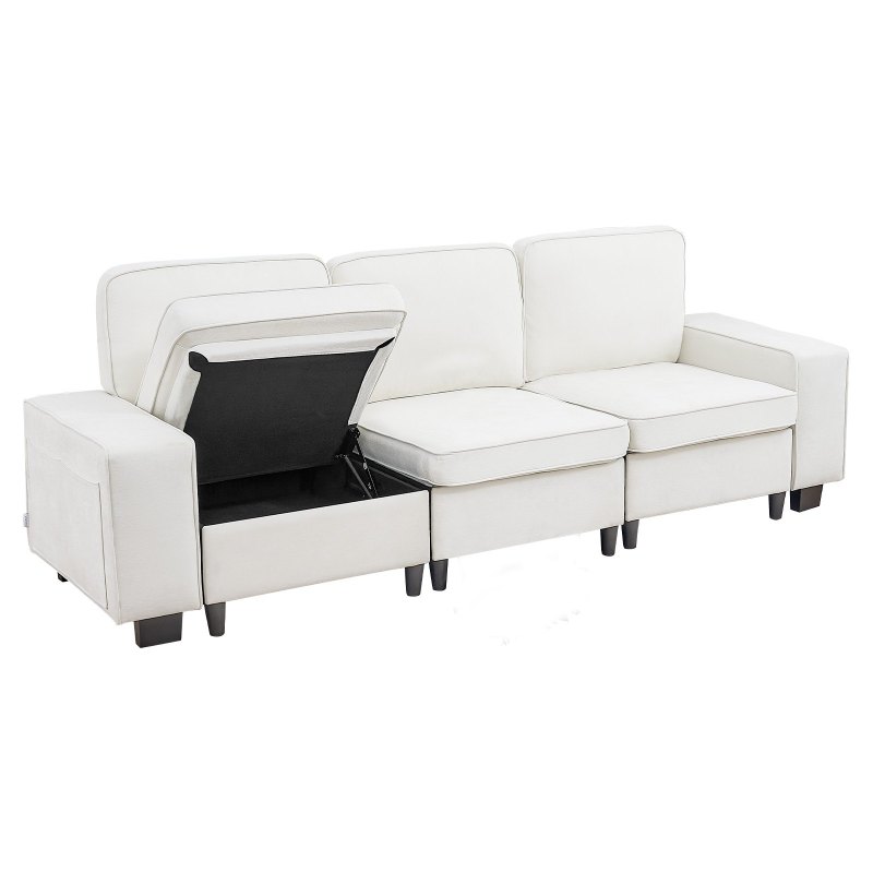 100-Inch Modular 3-Seater Sofa – Comfy Couch With Deep Seats & Hidden Storage, Modern Design For Living Room, Apartment, Or Office, White