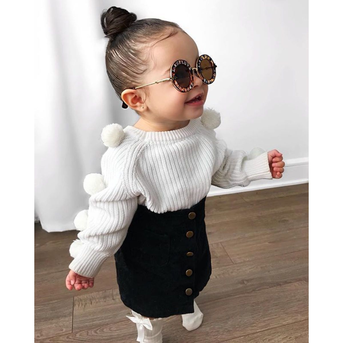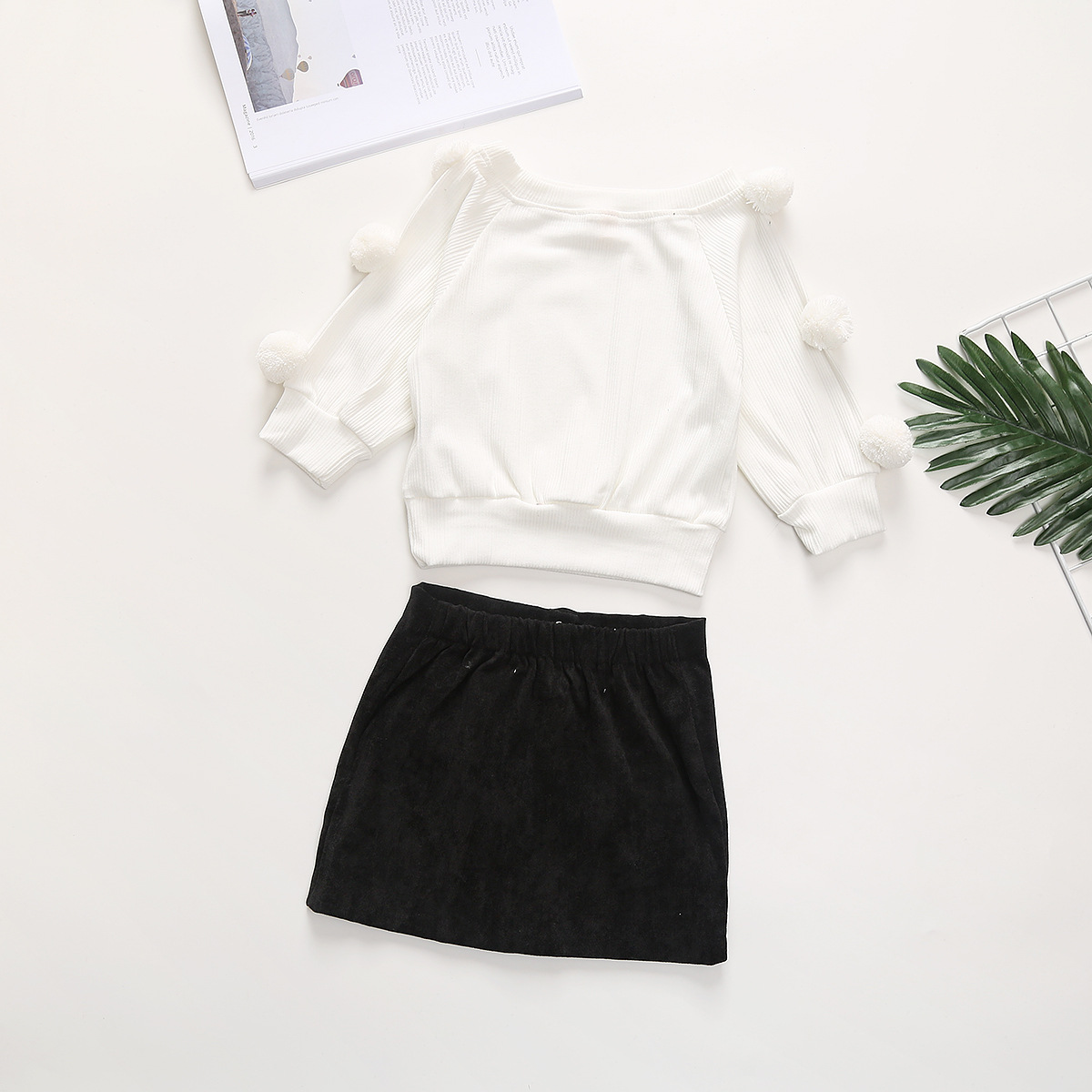 Cotton round neck long sleeve wool ball denim skirt