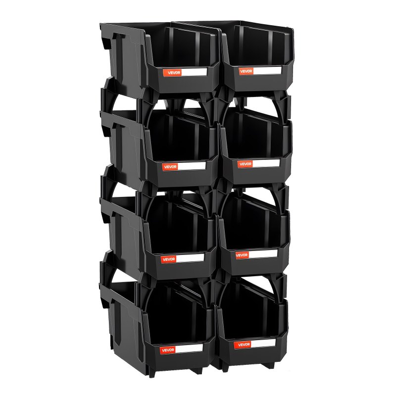 Durable & Practical: Crafted from sturdy, easy-to-clean PP plastic with reinforced pillar-style supports, these garage organizer bins can be stacked, hung, or placed flat. No wobbling, no breaking, fully reusable