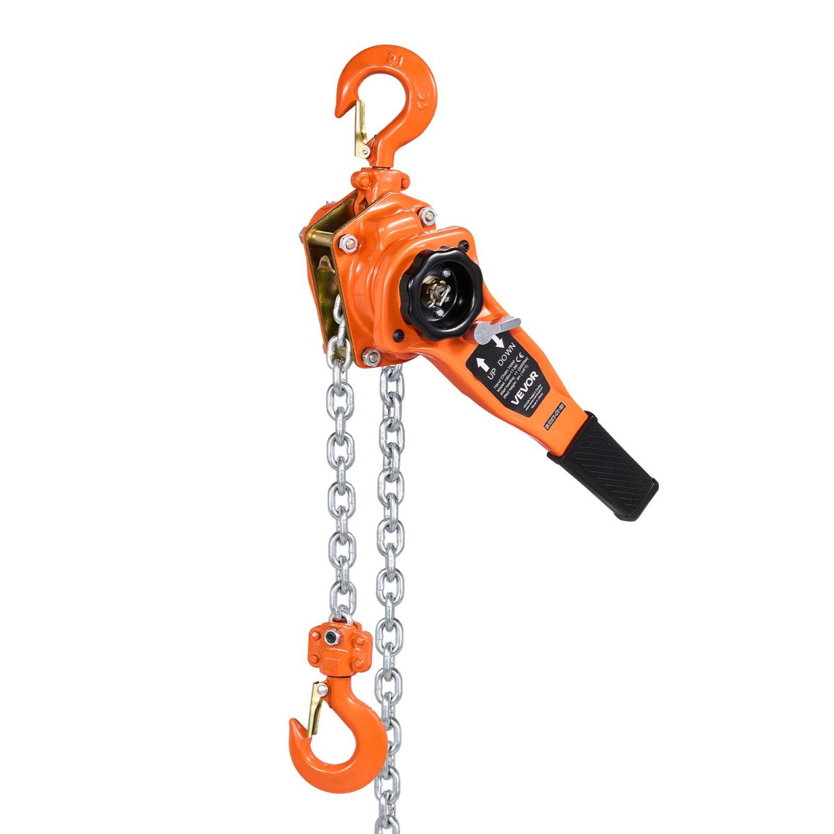 1T Max Load: This manual lever hoist features an all-steel construction that resists-impact and breakage, allowing one person to effortlessly move loads up to 1T / 2200 lbs. Ideal for dragging fallen trees, lifting steel beams, machinery, engine parts