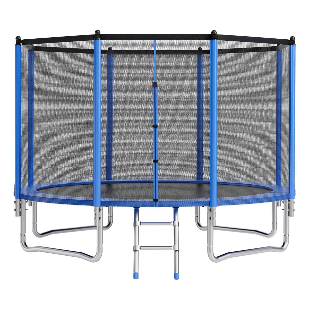 Sturdy & Durable: The recreational trampoline features upgraded all-steel frame that resists bending. Supported by four U-shaped legs, it is durable and sturdy. Metal parts feature wear-resistant zinc coating for rust protection. 64 springs provide stable and secure rebound with every jump