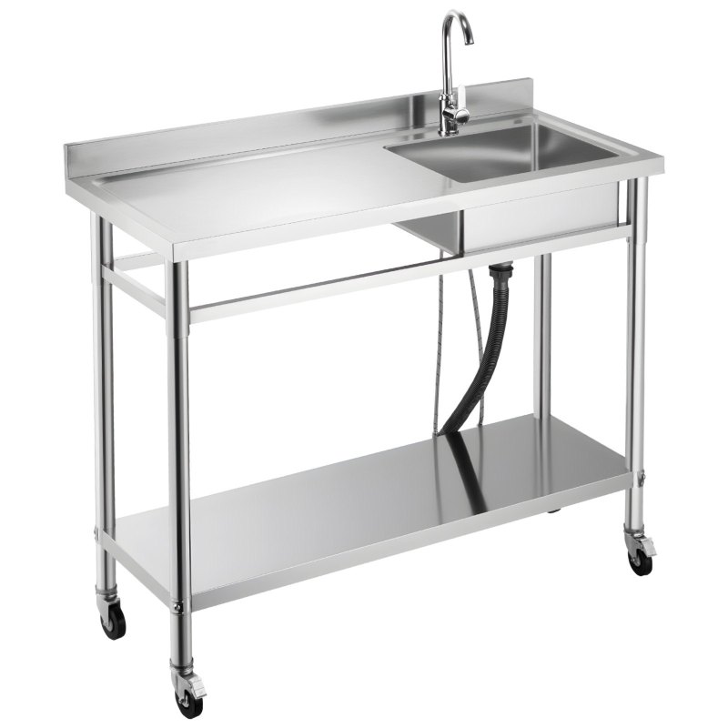 3-in-1 Multi-Functional Design: Combines a large workstation, deep sink, and adjustable bottom shelf for efficient washing, organizing, and storage. Our utility sink provides cleaning space; shelf height adjusts to 3 levels height