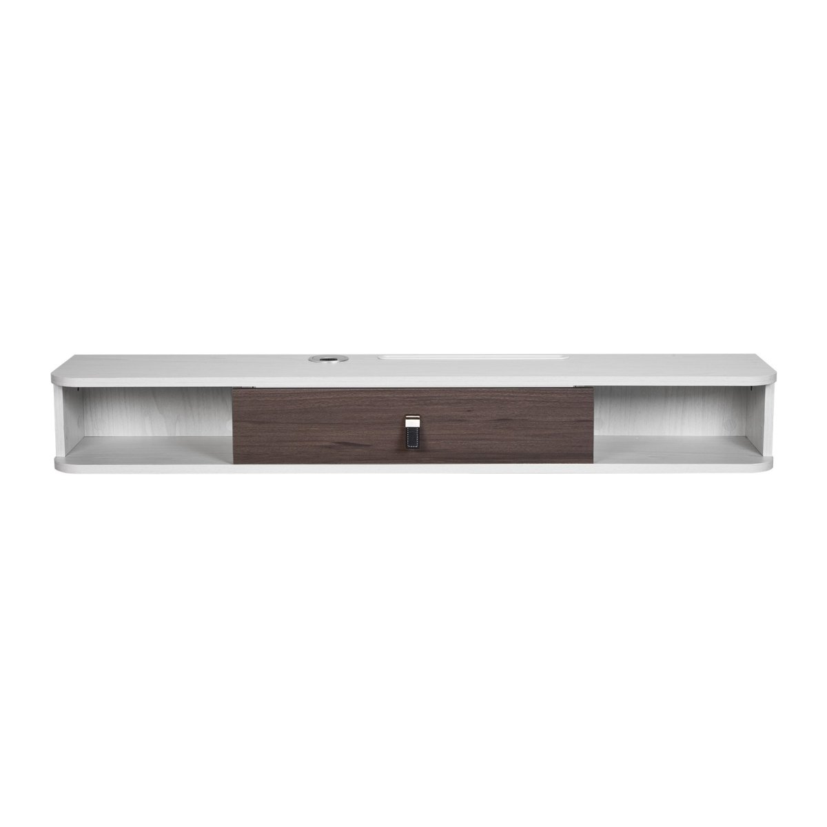 Sturdy and Durable: Made from E1-grade particleboard with a melamine surface finish, this floating TV stand is built to last. It can hold up to 115 lbs, so it’s ideal for your TV and other devices. Durable enough to last, it’ll keep your setup looking great for years.