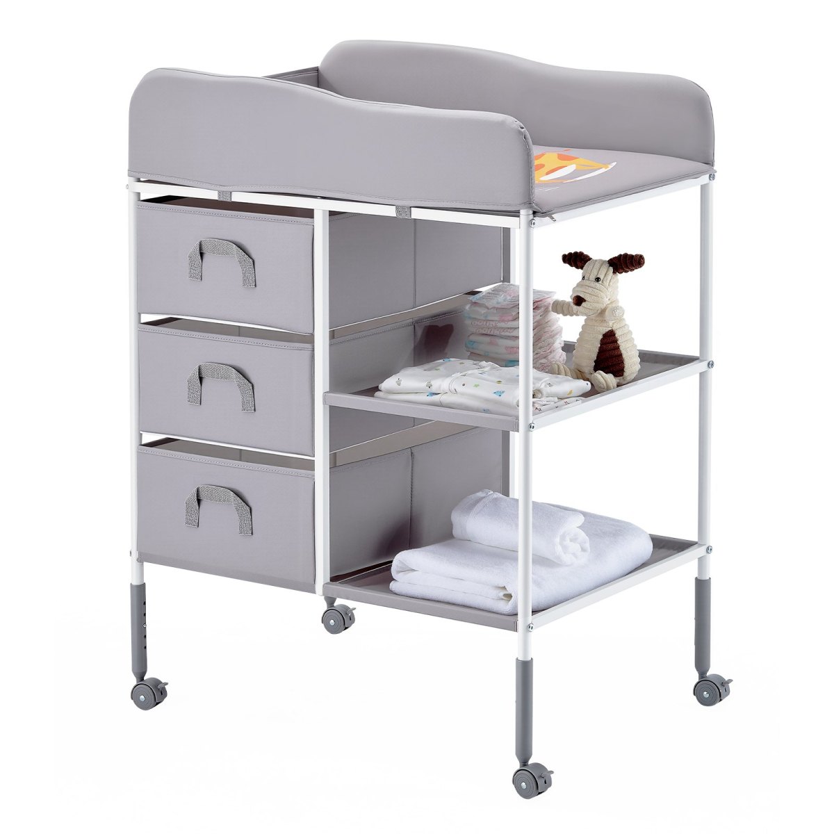 Spacious Storage: Whether it's diapers, wipes, baby powder, or other baby essentials, we’ve designed plenty of storage space for everything you need. This convenient setup makes it easier to grab what you need quickly and reduces the stress of searching for items, making baby care more efficient