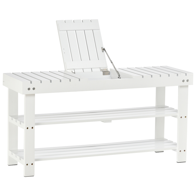 It's time to organise your shoes and boots with this cabinet from . The simple and modern look will fit any decor of your room. Crafted from solid wood and MDF board, this unit is durable for everyday use, with its open design over three shelves ensuring easy storage, whilst allowing your shoes to aerate for hygiene. A small concealed compartment on the top shelf allows storage of shoe accessories, keys etc. Finished with non-slip feet for balance and floor protection.