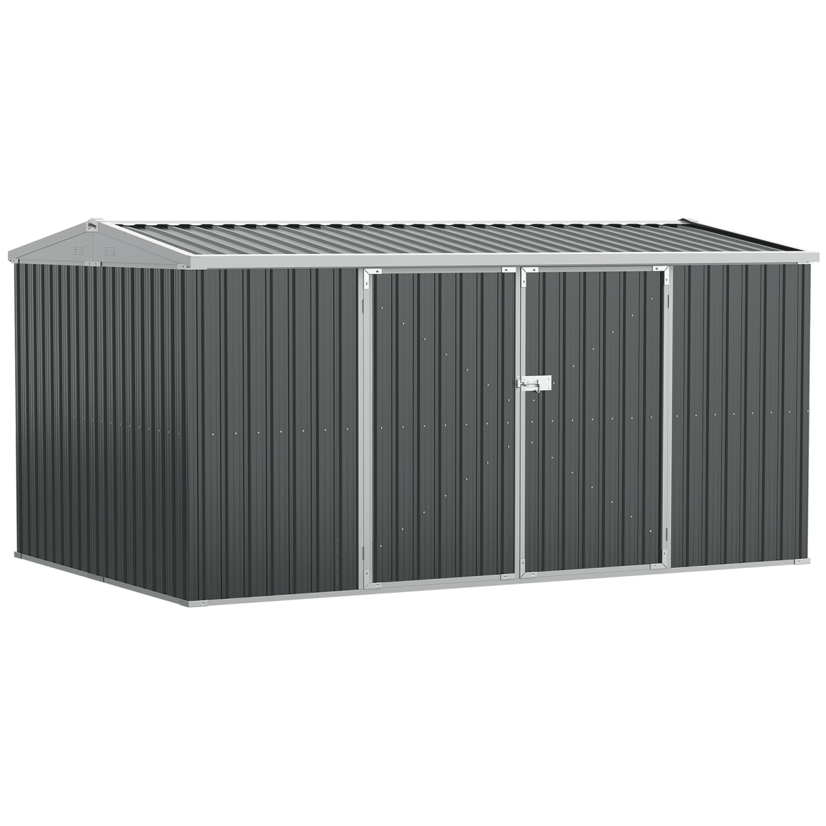 Easily add storage space and value to your property with an outdoor garden shed from . The steel tool storage shed has distinct advantages over traditional wooden models that make it a much more attractive choice for purchase. Large space for keeping tools, equipment, bikes and bins. Besides, the durable and weather-resistant galvanized steel ensure reliable daily use. Sloped roof is easy for rain draining. This backyard storage shed can be your perfect choice for patio and lawn.