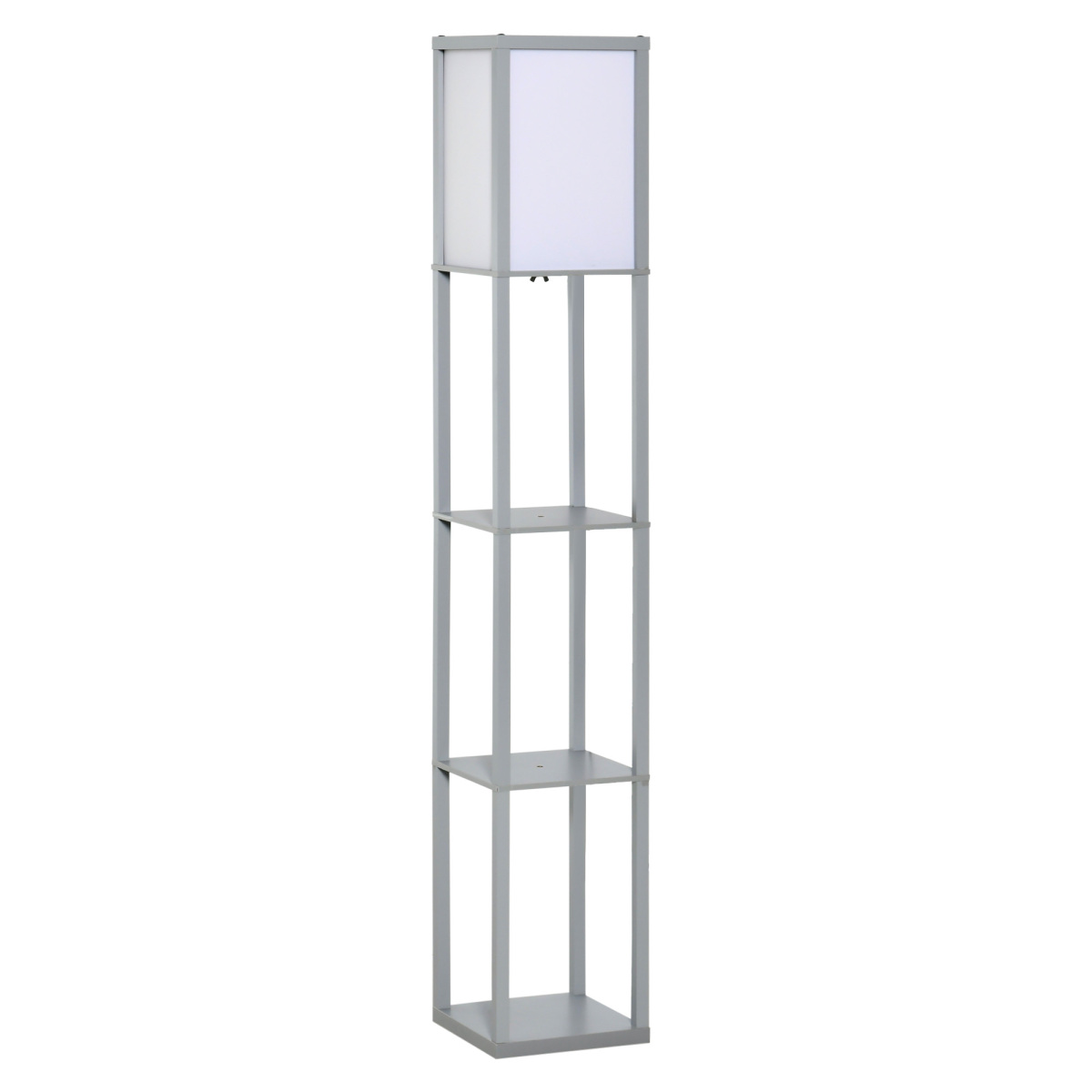 Illuminate your home the standing lamp, merging light, beauty, and storage elegantly and practically. Perfect for decor enthusiasts, this lamp offers three shelves for displays and a warm top light for a warm and inviting glow. Its sleek white shade complements any interior style, and the convenient foot switch ensures effortless operation. Crafted with a durable melamine coating, this lamp is a stylish and resilient addition to any living space, enhancing both ambiance and organization.