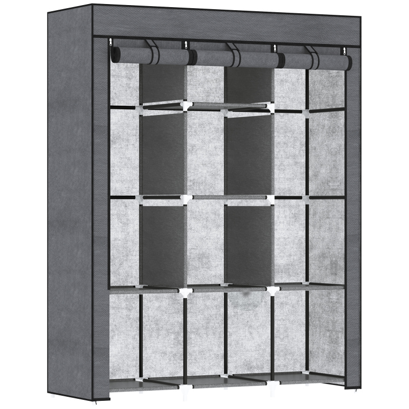 Whether temporary or permanent, this fabric wardrobe is for you. With two rails and eight shelves, there's plenty space for holding and organising clothes, towels and other linens. The fabric cover shields inside from dust, complete with a zipped roll-up door for easy access.