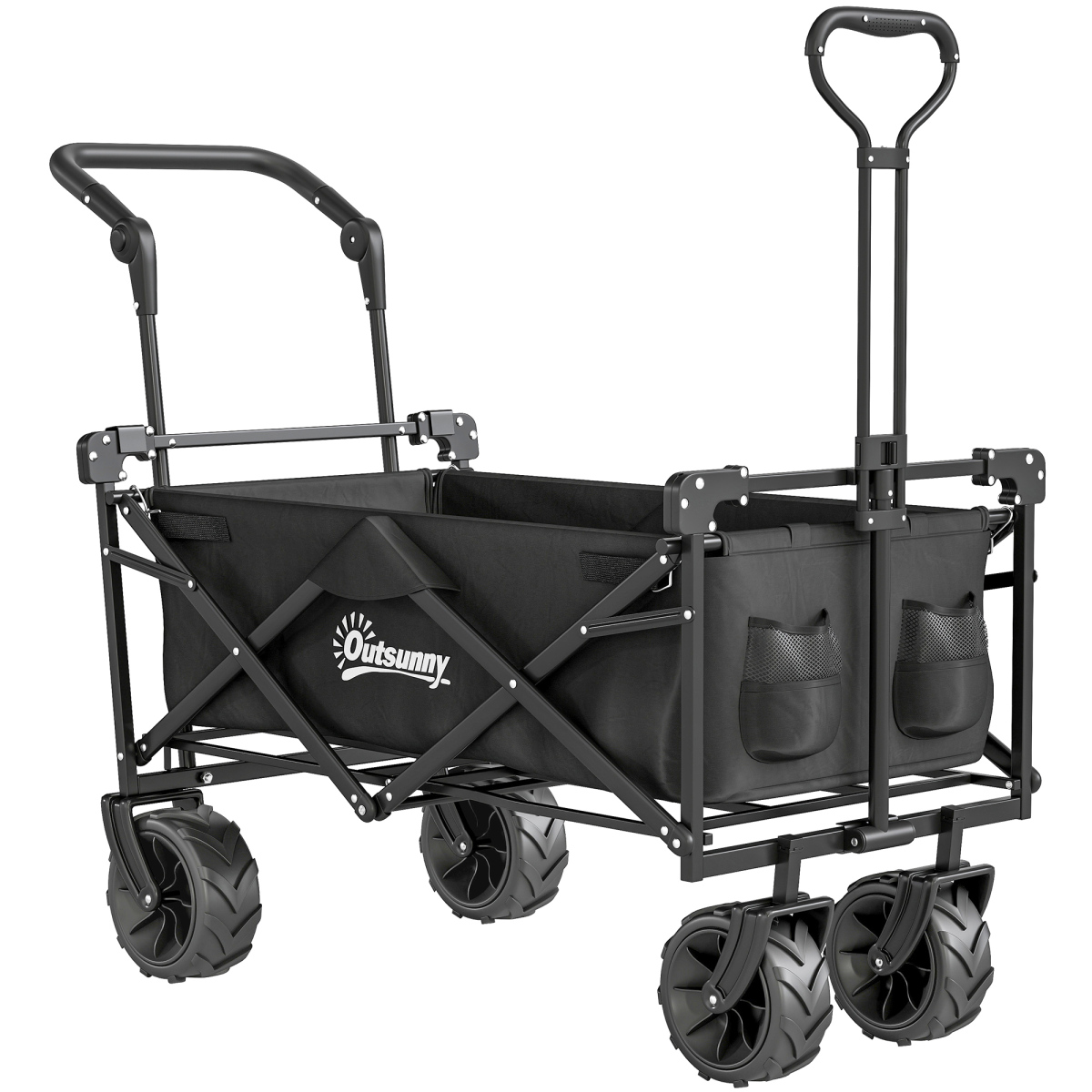 Take the effort out of moving food, bottles, boxes, and everything else in-between with this pull along trolley from . A spacious design, it incorporates a large main cart to allow you to move lots of stuff, with a side outer pocket for quick and easy access to anything on the go. Foldable in design for compact storage when not in use, this trolley on wheels is finished with a telescopic pull handle and cup holder. Perfect for visits to the shops, camping trips and festivals.