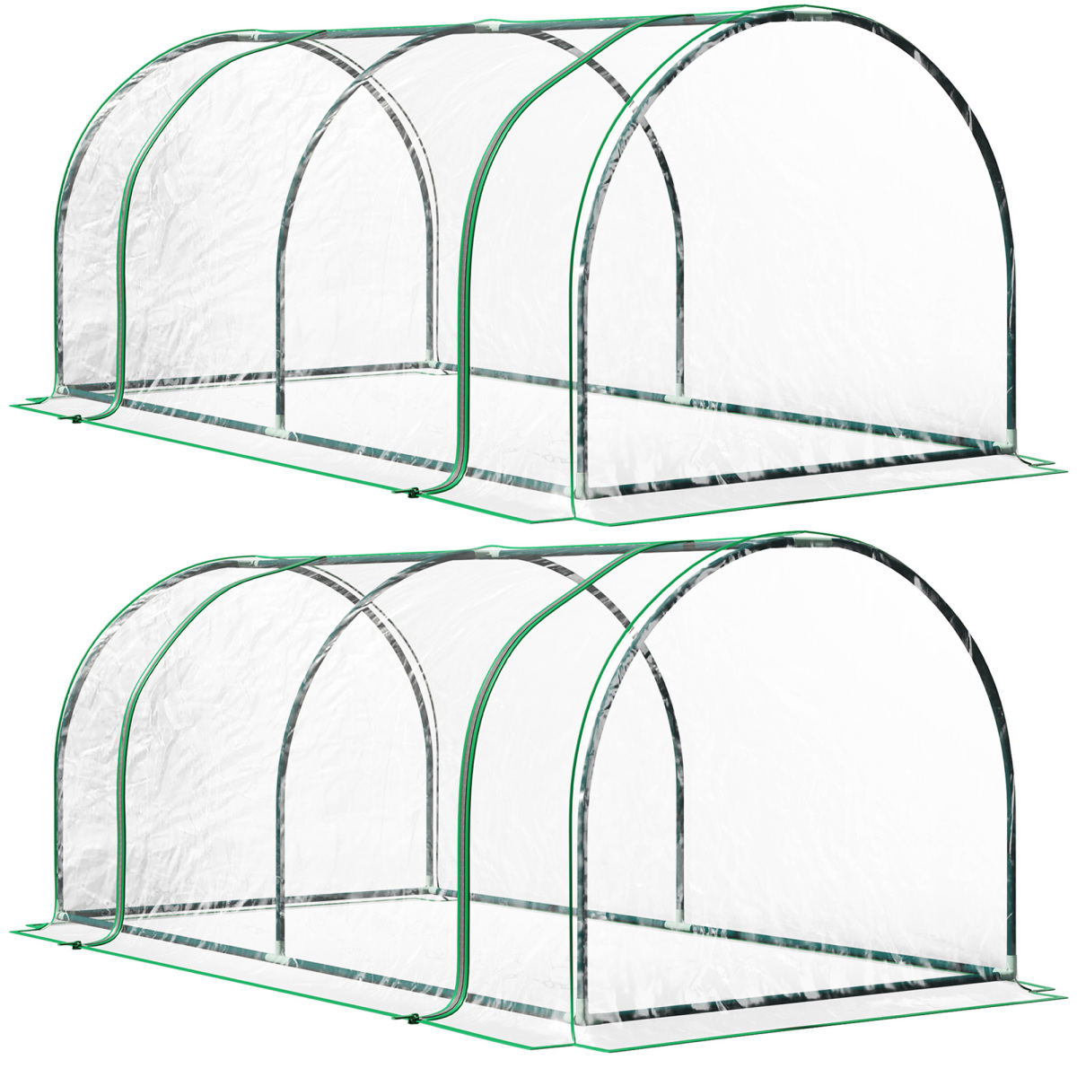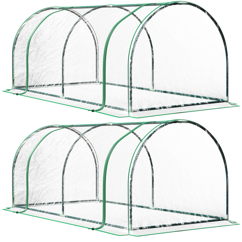 Set Of 2 Tunnel Greenhouse, Green Grow House With Roll-up Door, Steel Frame, Plastic Cover For Garden, Outdoor, 200 X100 X 80cm, Clear