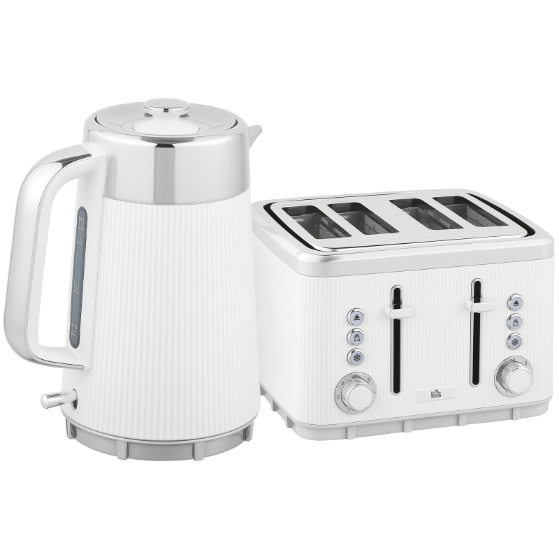 Start your mornings with the toaster and kettle set. Designed for busy families or home offices, the 1.7L kettle with UK Strix thermostat ensures rapid and accurate boiling with safety including auto shut-off, boil-dry and overheat protection, while the four-slot toaster offers independent controls and 7 shade settings for personalized perfection. From frozen bread to fresh slices, enjoy convenience. Elevate your breakfast routine with this stylish and unified kettle and toaster set.