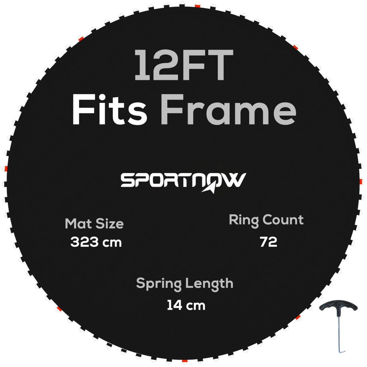 • With 72 V-rings included, this mat fits a 12ft round trampoline using 14cm springs
