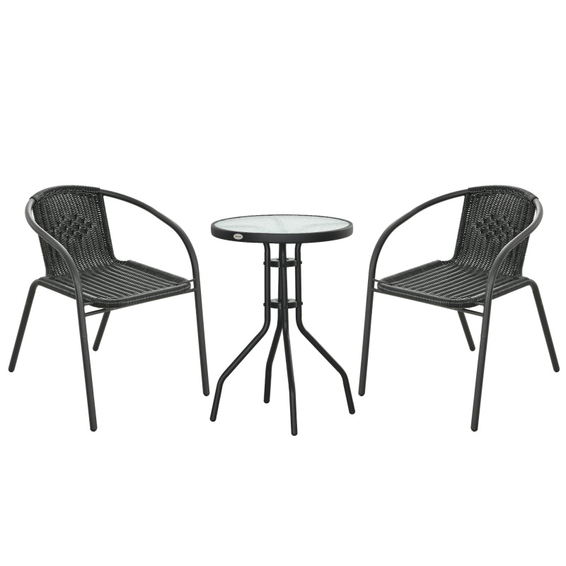 Create your personal oasis with our garden furniture set! This garden bistro set features two trendy leisure chairs and a stylish tempered glass tea table, making it great for relaxation and socializing. Each chair is adorned with a wide seat, firm backrest and armrest, providing a cosy seating experience. Elevate your outdoor space with these bistro table and chairs, adding a touch of fun and leisure to your everyday life. Experience serenity and style like never before!