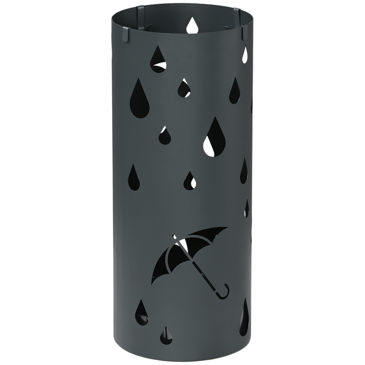 Rainy days mean umbrellas. And umbrellas can result in wet floors. Merging style and function, this stand gives umbrellas their own storage place, whilst bringing in a touch of style. Made from galvanised steel, this umbrella stand is strong and resistant to rusting. The 41H x Φ17cm size holds two large umbrellas, with four hooks included for smaller brollies. Comes with a removable bottom tray to easily remove any liquid.