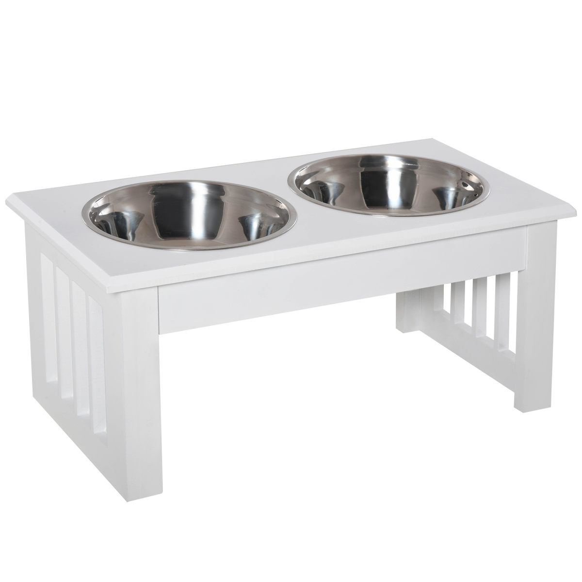 Make meal times easier for your pets with this cat bowl with stand from PawHut. With an MDF base that has been built to provide years of use, it features two round stainless steel bowls. Robust, hygienic and dishwasher safe, both bowls are easy to look after and safe for your pets to use and are great used together for both food and drink. In an elevated design, the base helps make eating cleaner and easier for your pets, aiding digestion and putting less strain on the neck.