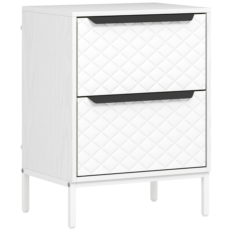 Easy, simple storage with this fabric chest of drawers. With two same drawers, it's easy to sort everything from socks to underwear. The wood-effect MDF frame and diamond-stitched drawer fronts create a timeless modern look to suit any home decor. An MDF frame with X-bar keeps this bedroom dresser tough and stable. Complete with adjustable feet for balance even on unsteady grounds.
