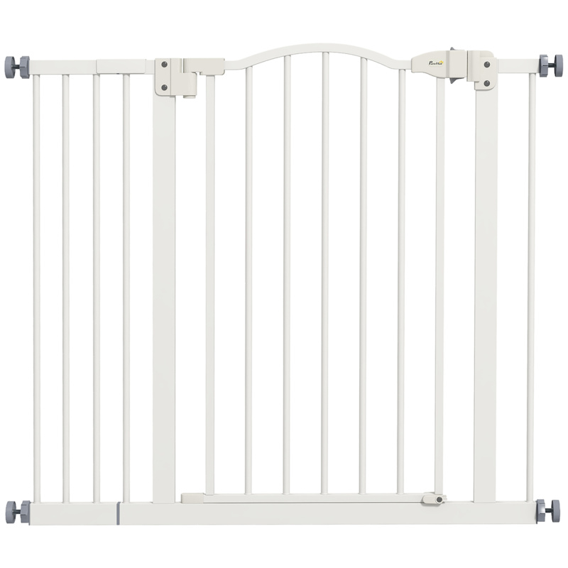Keep pets away from specific places easily with this safety gate from PawHut. It's made from metal for strength and its width can be adjusted between 74cm and 80cm/87cm and 94cm, meaning it will fit properly in door frames and other passages. Fitted with a middle door to pass when needed, the slide-and-lift handle is easy to use so you can walk through quickly. Two rotating locks on the bottom allow the door to opened both ways, with a double locking mechanism to finish for extra safety.