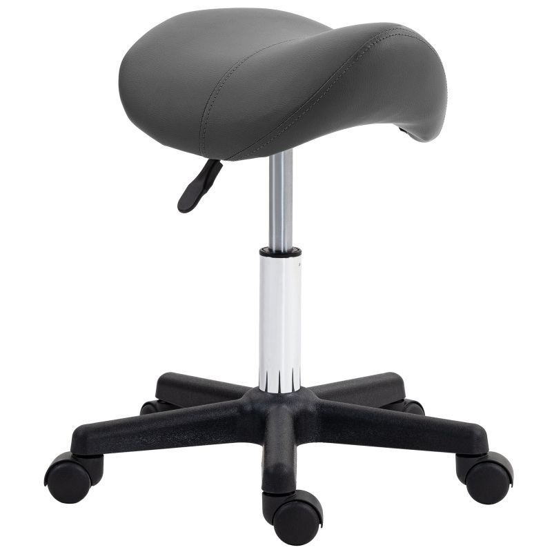 Ensure you have the correct posture when working - wherever, thanks to this swivel chair. A steel base for balance and weight, the height is adjustable between 45cm and 57cm - sit at a position you want. Curved in shape, the padded seat allows you to sit comfortably whilst keeping you supported. Complete with five wheels to move around easily when seated.
