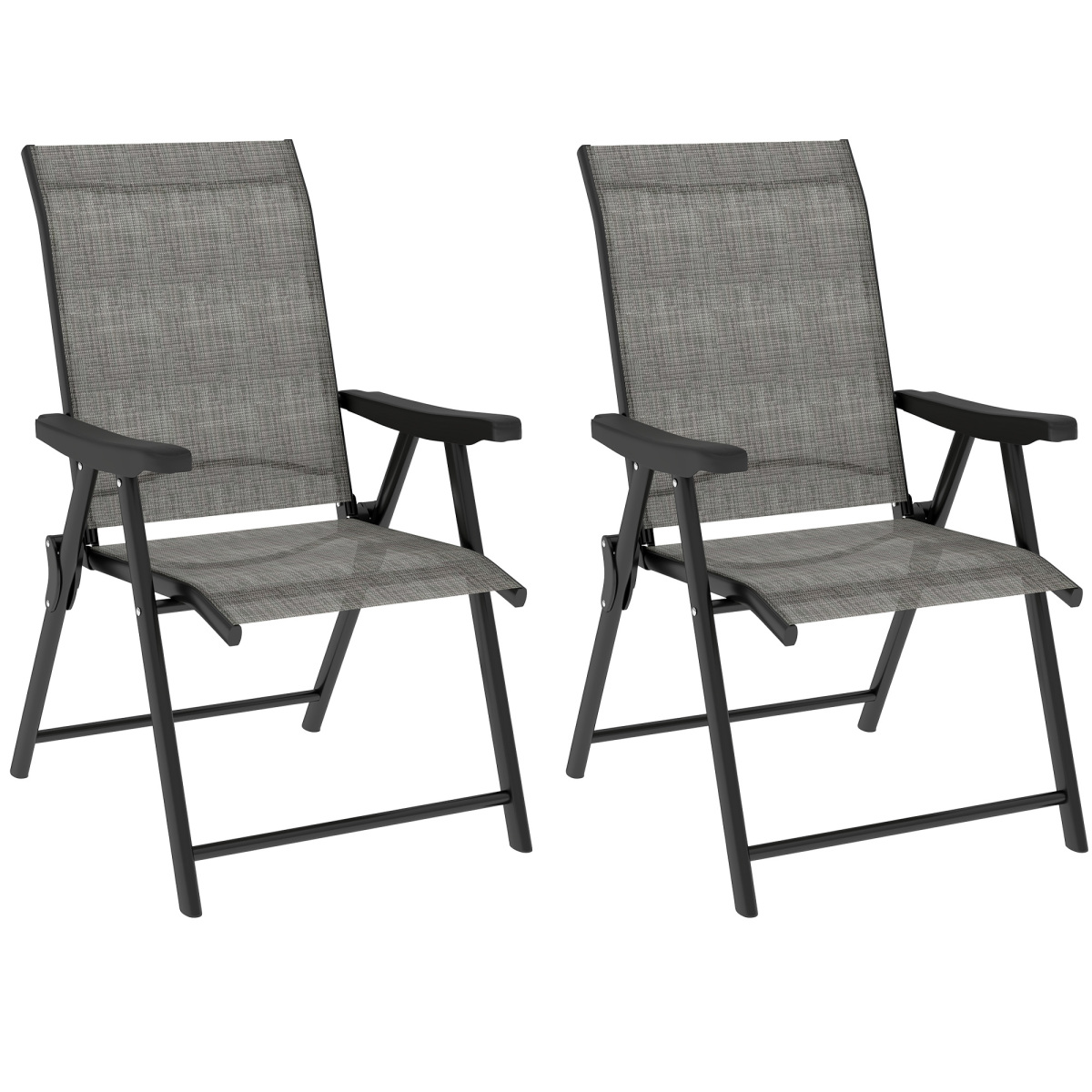 An essential set for garden and outdoor spaces - these two outdoor dining chairs. With 63 cm high backs and armrests for support, the breathable mesh fabric seats hold you comfortably. Using powder coated steel frames for a strong core, these chairs are foldable - carry around and store whenever you want