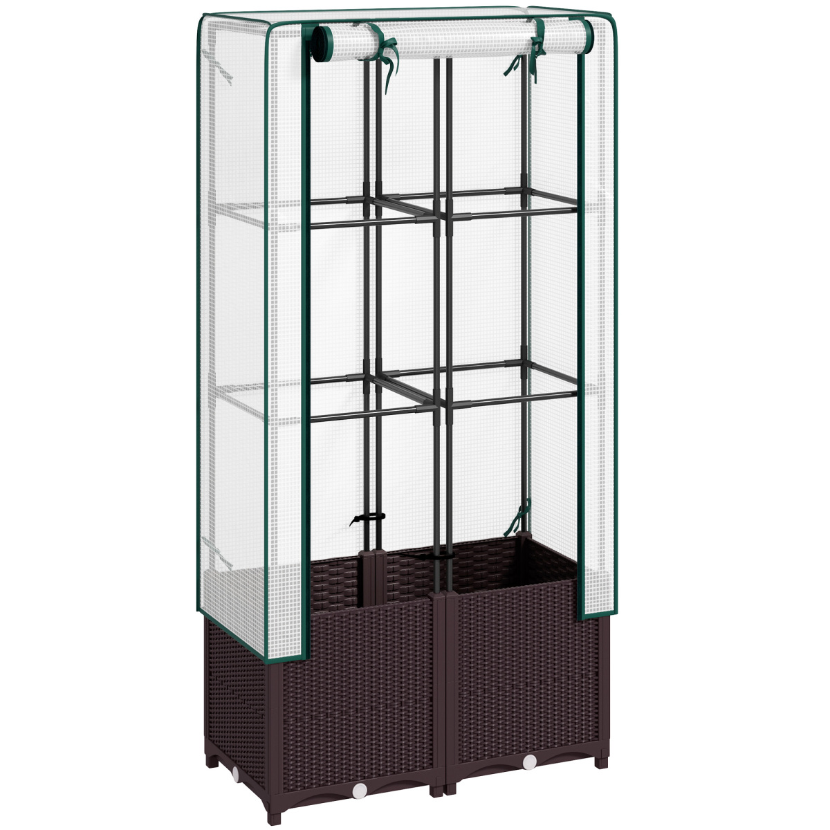 Discover the joys of gardening with the Raised Garden Bed! This garden planter includes supportive trellises for your climbing plants and a PE cover to ensure the right humidity and temperature. Its roll-up zip design enhances airflow, making it an excellent choice for your flowers or vegetables. Plus, it's light enough to move to the desired spot in your garden oasis.