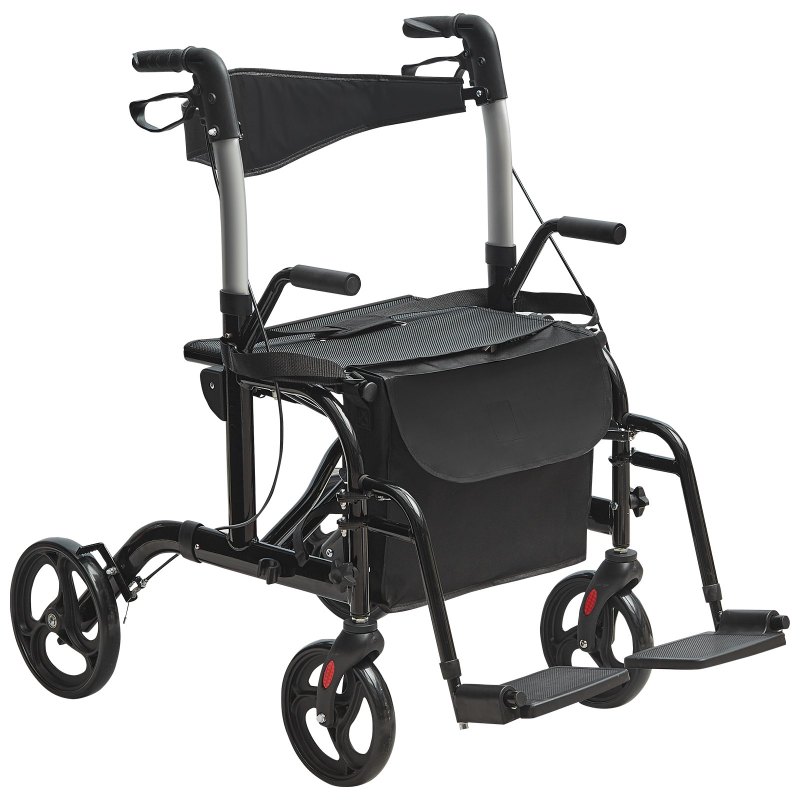 VEVOR 2-in-1 Rollator und Transportstuhl zusammenklappbare Rollator-Rollstuhl-Kombination und Fu_stützen leichter Aluminium-Rollator mit verstellbarem Griff All-Terrain-Räder 136 kg Schwarz