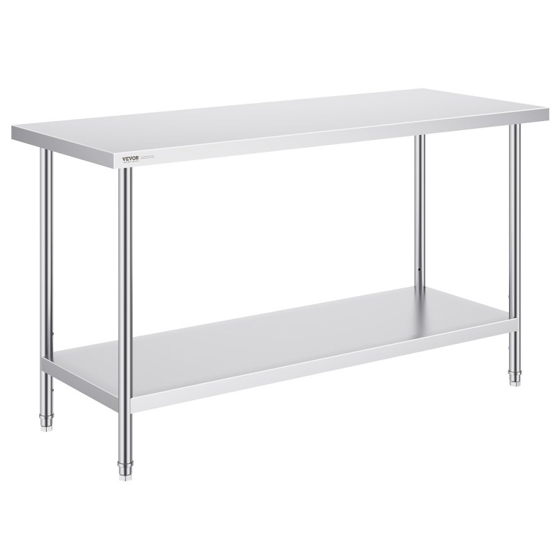 VEVOR Zubereitungstisch aus Edelstahl, Zubereitungstisch robuster Arbeitstischl mit 3 einstellbaren Höhenstufen, gewerbliche Arbeitsstation für Küche, Garage, Restaurant
