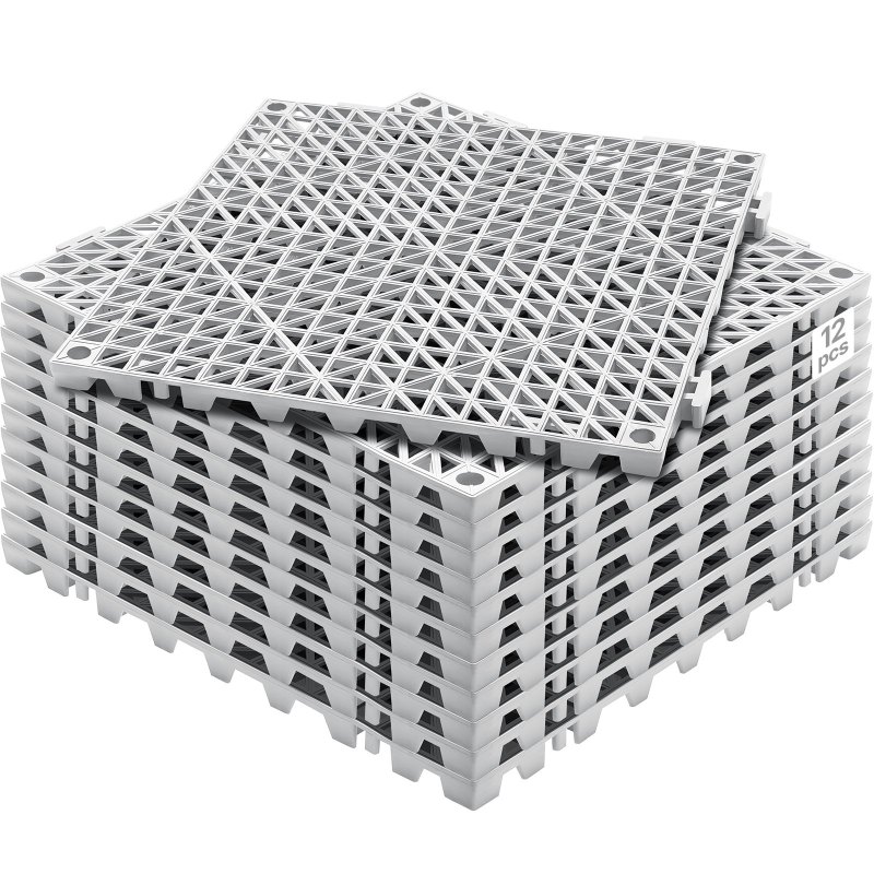 VEVOR Ineinandergreifende Fliesen 12 Stk. Bodenfliesen Drainage-Bodenfliesen, Bodenfliesen 30 x 30 cm Au_enbereich Quadratische Bodenfliesen Terrasse PVC Bodenfliesen Badezimmer, Pool, Toilette, Grau