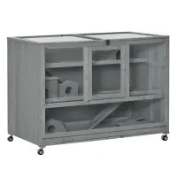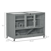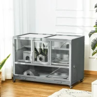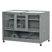 Create a safe and active space for your hamster to feel at home with the triple tiers, seesaw, and multiple ladders of this PawHut hamster cage. You have given them open room for exercise and numerous dark hideouts. The front offers easy sight, featuring crystal clear windows. A large number of doors makes it easy to reach in from anywhere. The wheels allow easy rolling from one spot to another, so when you put the cage on your desk, you can move it around as needed and avoid heavy lifting.