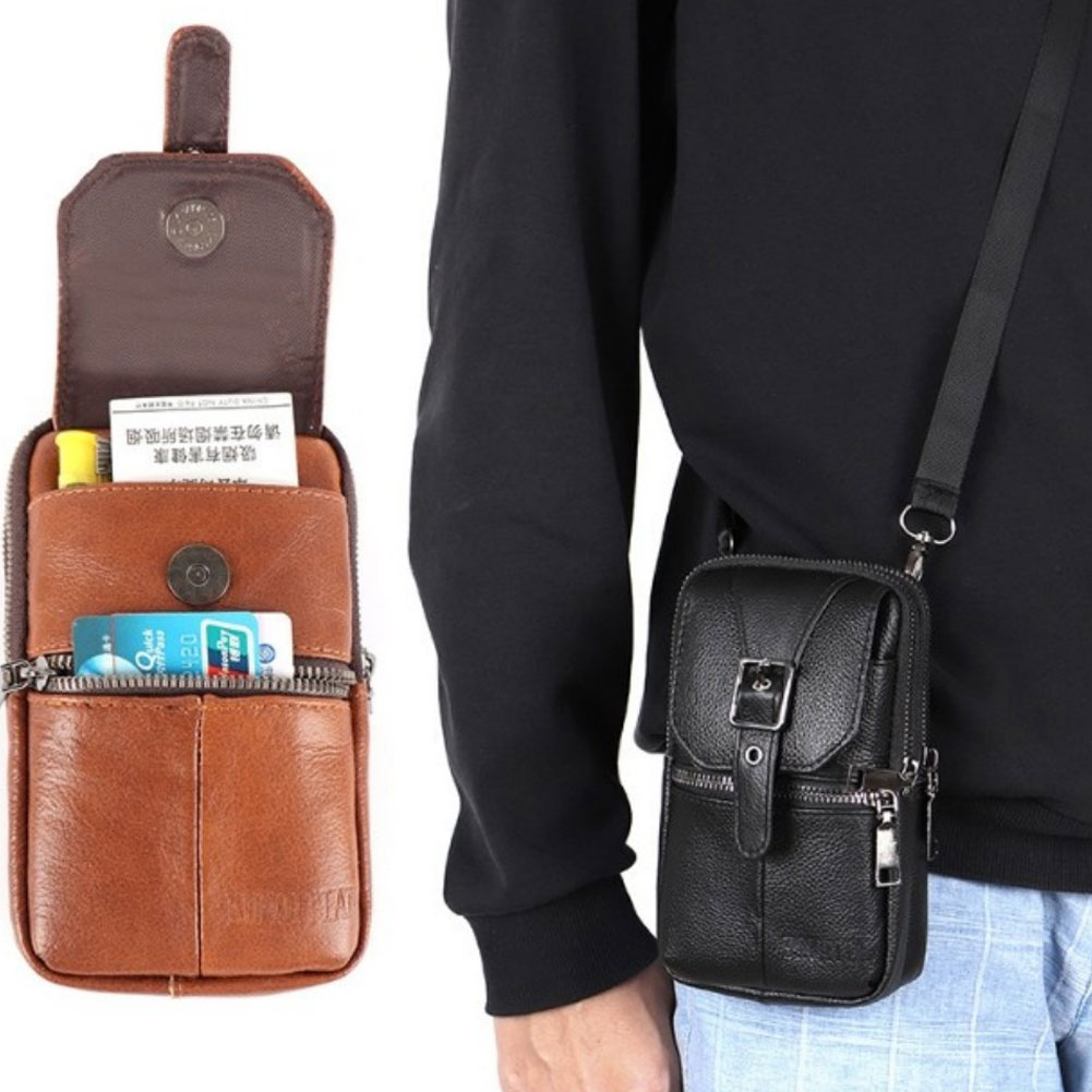 Men's And Women's Leather Multifunctional Slanted Phone Bag Waist Bag Phone Case