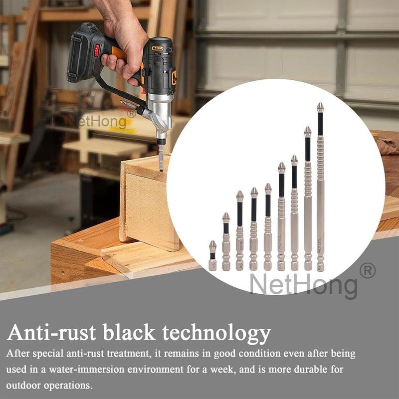 9PCS Cross Head Impact Drill Bits-Magnetic Anti-Slip Screwdriver Bits For Drills UK