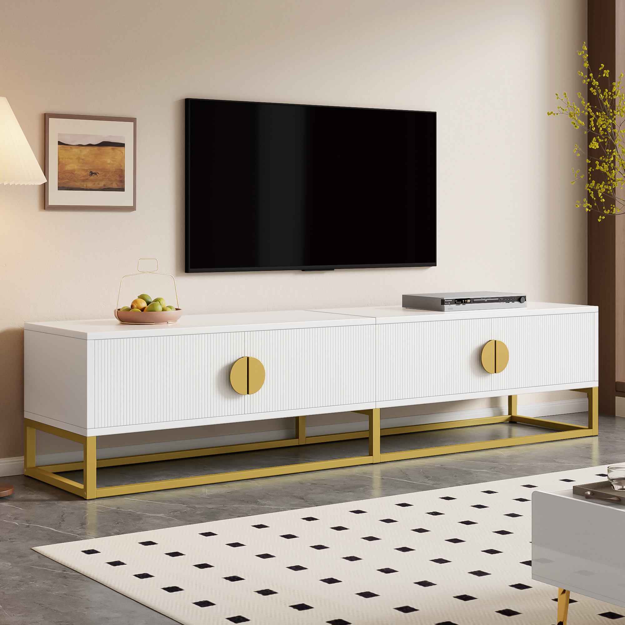 Product Name:180 cm TV Cabinet in White – Modern Dining Room Cabinet, 4 Doors, Semi-Circular Handles