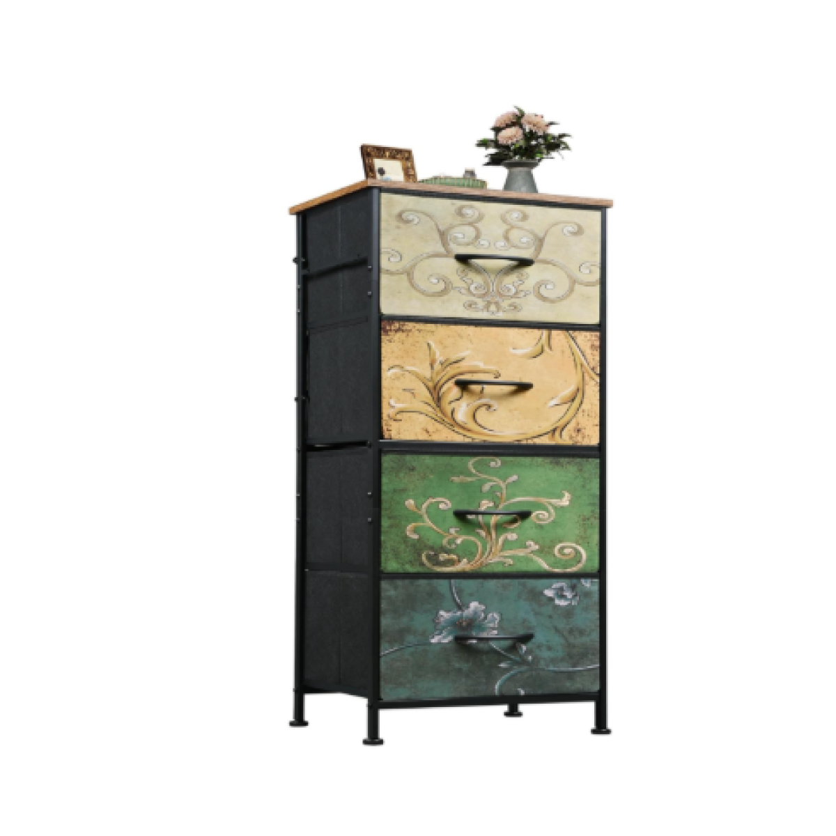 Sturdy and safe + easy to maintain: The X-shaped metal rear frame enhances stability, and the waterproof MDF top is easy to clean with a wipe. Durable fabric drawers with anti-fading handles, adjustable feet and anti-sharp kits, suitable for uneven floors, safe and worry-free to use