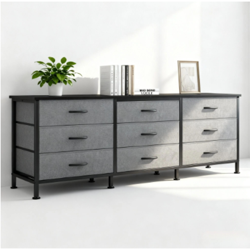 9-drawer capacity: 9 20× 13.8-inch deep fabric drawers + spacious desktop, categorizing and storing DVDS, game accessories, bedding, clothes, etc., saying goodbye to clutter in the bedroom/living room
