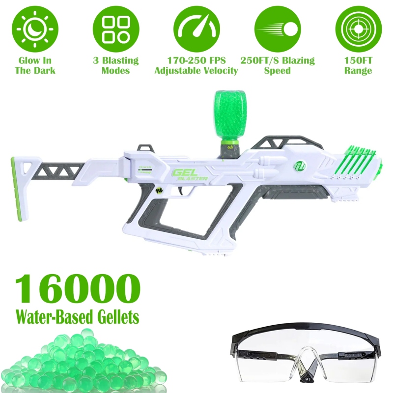 *Ultimate Fun Game*:The blaster toy gun delivers action-packed excitement as the top-tier supersized blaster. Leave the haters in awe as you blast targets 150 feet away at a blazing speed of up to 250 feet per second. Conquer the battlefield day or night with superior power,range,and a massive gel ball capacity for non-stop gameplay.