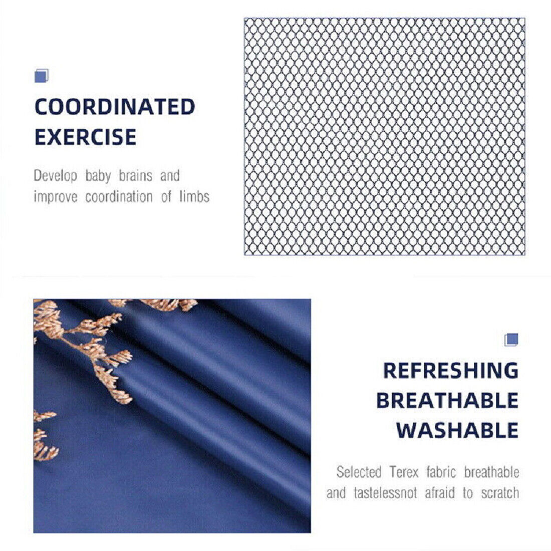 [Multi-mesh Design]: The multi-mesh design allows you to watch your baby's every move and prevent dangerous postures. Meanwhile, your baby can see your figure while playing, which makes the baby feel more secure.
