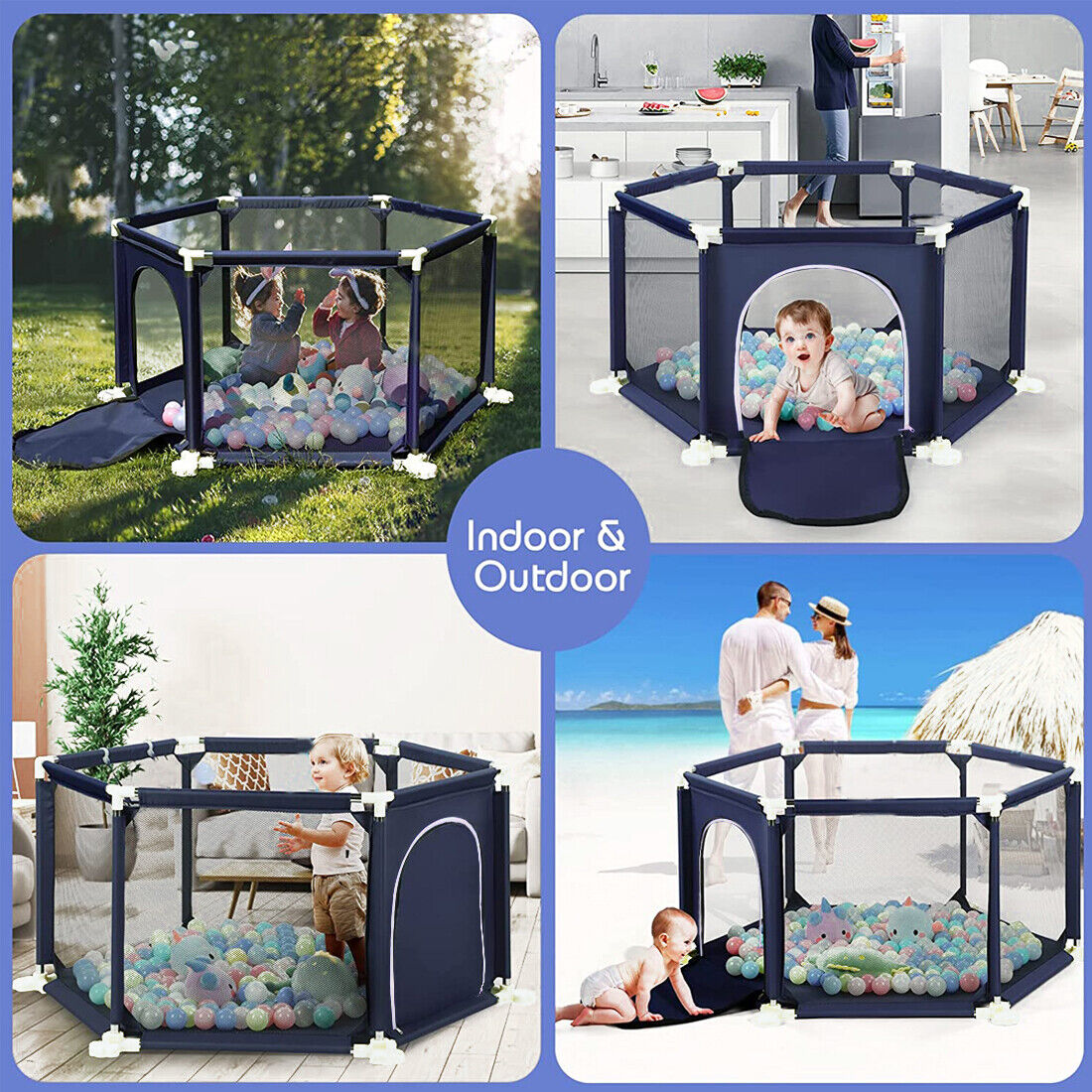 [Free Your Hands]: The playpen creates a secure play space for your baby and keeps the baby away from dangerous situations. You can watch your baby playing in the playpen while working or doing housework or other things. Enjoy yourself!