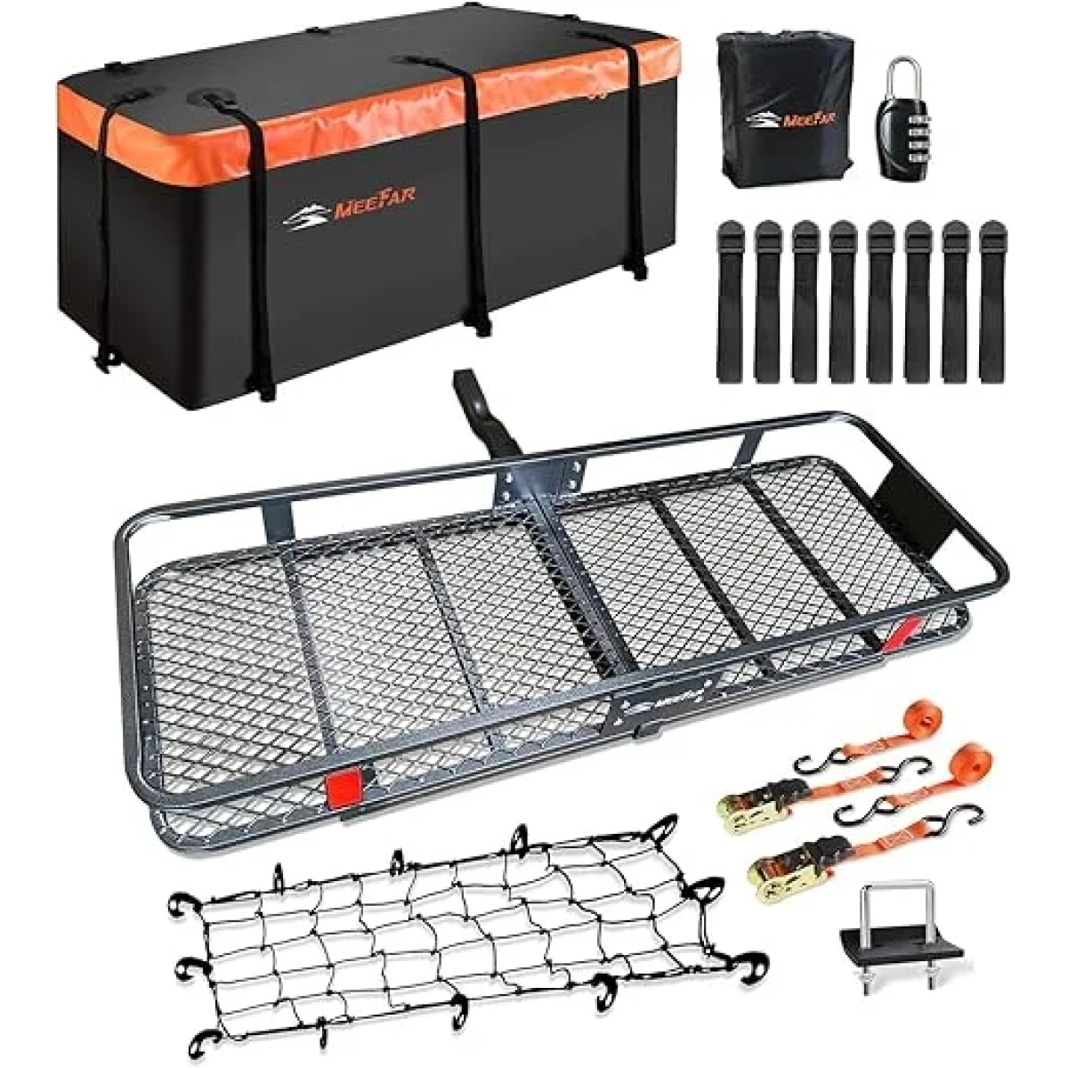 Made of high-strength steel, it has a powerful load-bearing capacity of 500 pounds: The color epoxy powder-coated steel combines high strength and lightweight, with a maximum load capacity of 500 pounds. It can easily carry luggage, camping equipment, and outdoor gear, and is durable and durable.