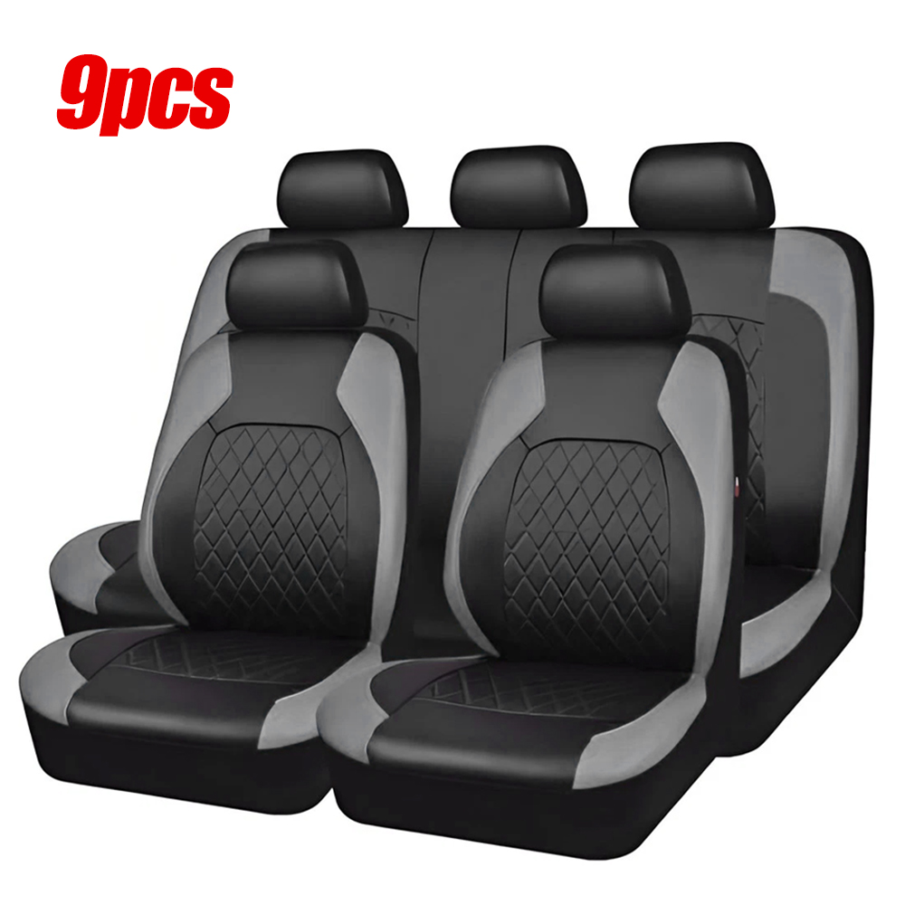 9pcs Full Set Universal PU Leather Seat Covers Protectors Non-Slip Cover--BLACK-GARY