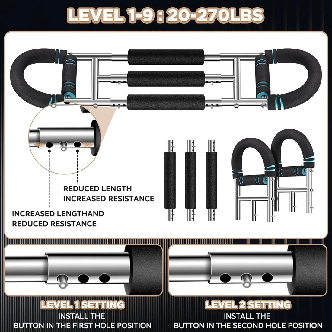 -Customizable Resistance Levels - Adjust the mounting distance of the spring bar and grip to tailor your workout intensity, allowing you to build muscle strength and improve performance according to your fitness goals.