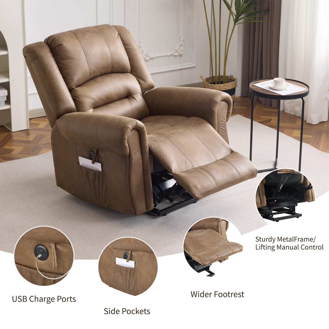 Product Name: Power Lift Recliner Chair with Massage & Heat for Elderly, Single Motor Electric Lift Chair, Tech Fabric Upholstery, 8-Point Massage & 8-Point Heating, USB & Type-C Ports, Side Pockets,Brown
