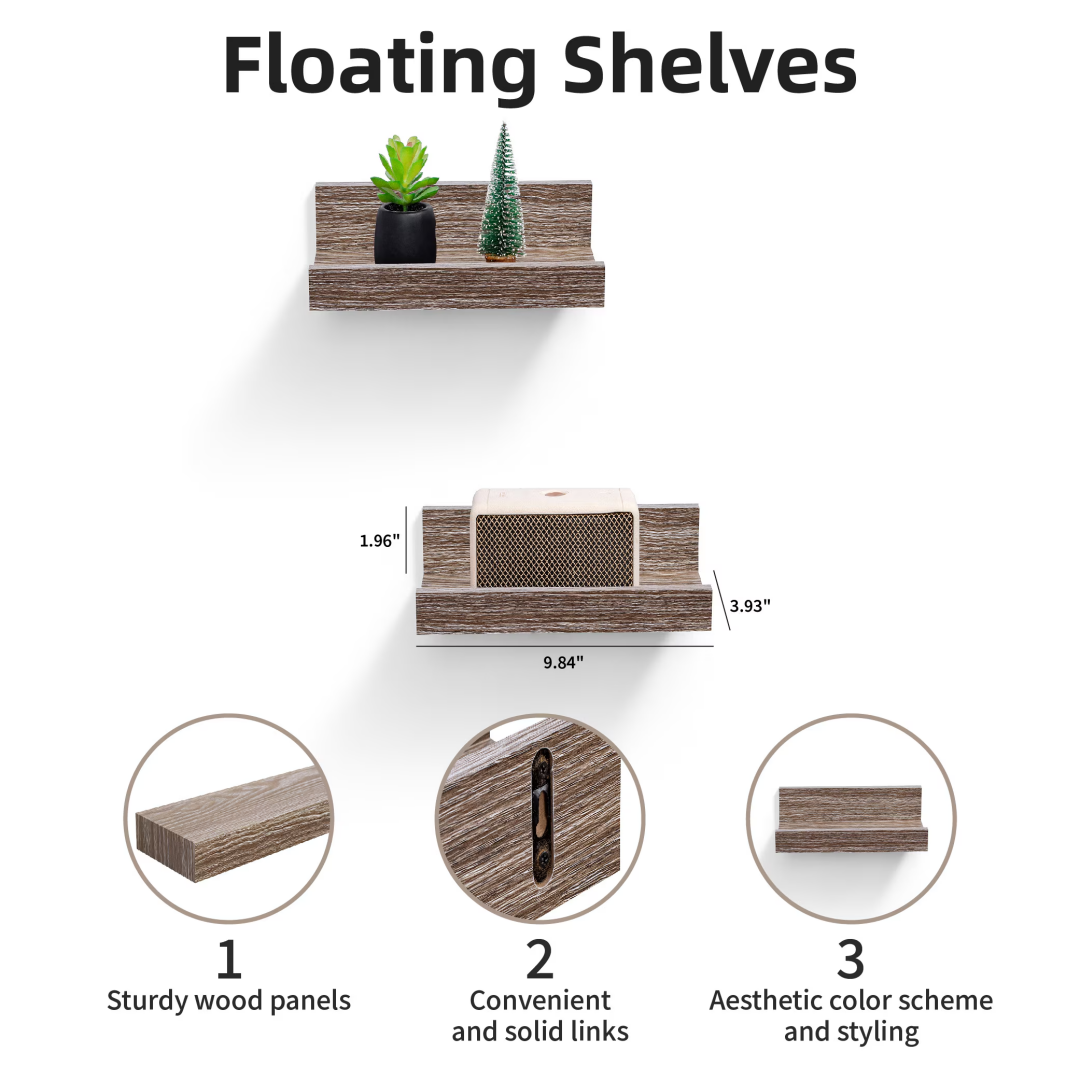 Maximize Your Space: Take advantage of storage without occupying additional floor space. These shelves help reduce clutter and emphasize wall decor, making them perfect for smaller areas. Our Floating Wall Shelves offer innovative storage options for homes of any style, studio apartments, mantels, or vacant walls. Use them to enhance bedroom decor, living room aesthetics, bathroom sets, or wall decor in the bathroom.