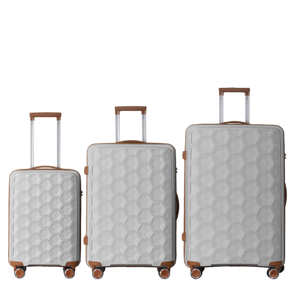 High-Quality Luggage Sets: Crafted from 100% PP materials, these hardshell suitcases are durable, lightweight, and impact-resistant, showcasing a unique honeycomb texture for added protection and style.