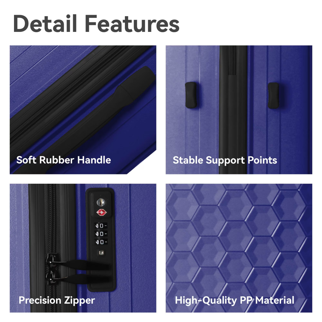 High-Quality Luggage Sets: Crafted from 100% PP materials, these hardshell suitcases are durable, lightweight, and impact-resistant, showcasing a unique honeycomb texture for added protection and style.