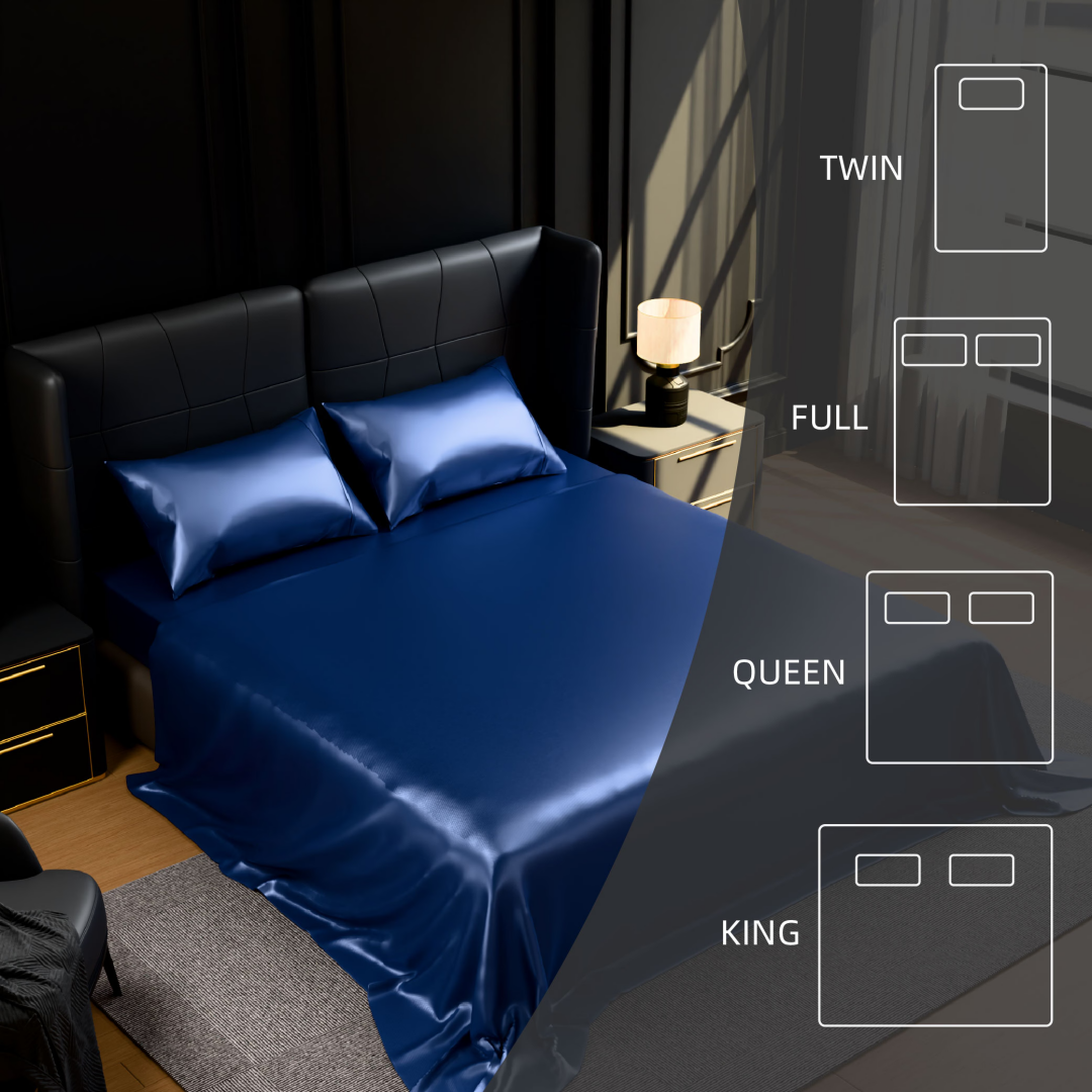 Silky Satin for Luxurious Comf: Made from 90GSM premium satin, this full-size sheet set offers a smooth, cool, and silky touch for a hotel-like sleep experience.