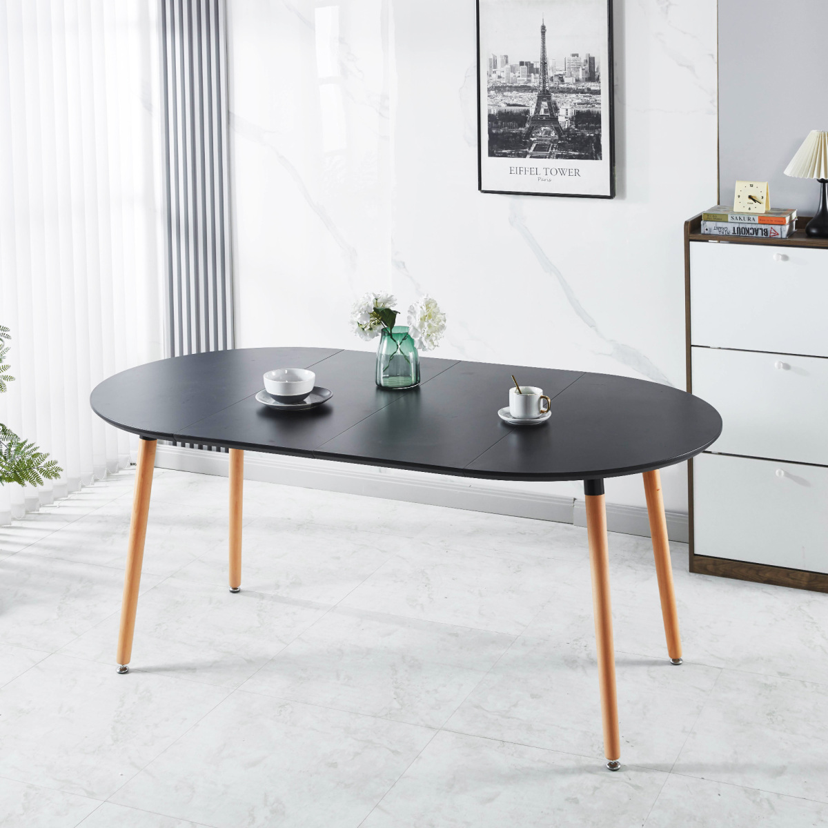 Product Name:Extensible table,DINING TABLE,OFFICE TABLE,COFFEE TABLE,wood leg,MDF top,100/140/180x100x75cm,black color