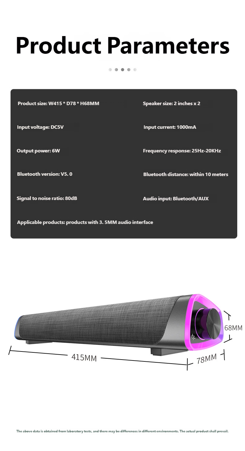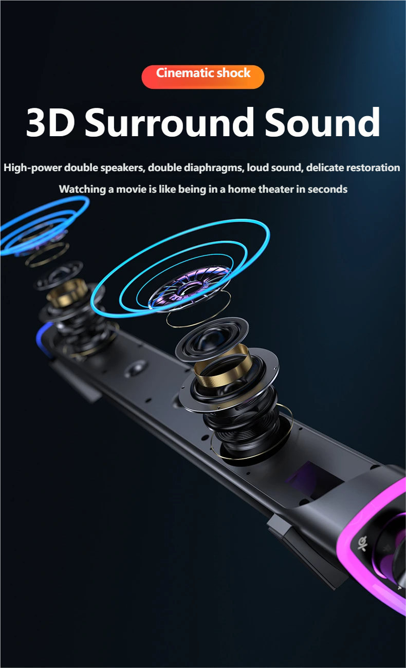 Equipped with a dual-core dynamic coil unit and dual 2-inch speakers, professionally tuned for clear highs, rich mids, and powerful lows. With a 6W output power, ≥75dB signal-to-noise ratio, and a frequency response of 25Hz-20KHz, it delivers a delicate and authentic 3D surround sound experience for both movies and music.