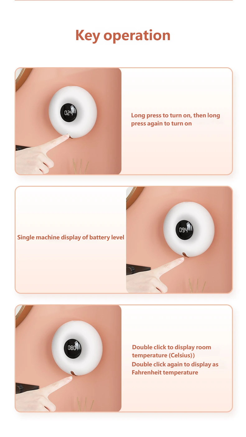 LED Smart Display, Status at a Glance: The body is equipped with a high-definition LED display. Long pressing allows switching between display modes to show remaining battery power and indoor temperature (switchable between Celsius and Fahrenheit), keeping the machine's operating status under control.