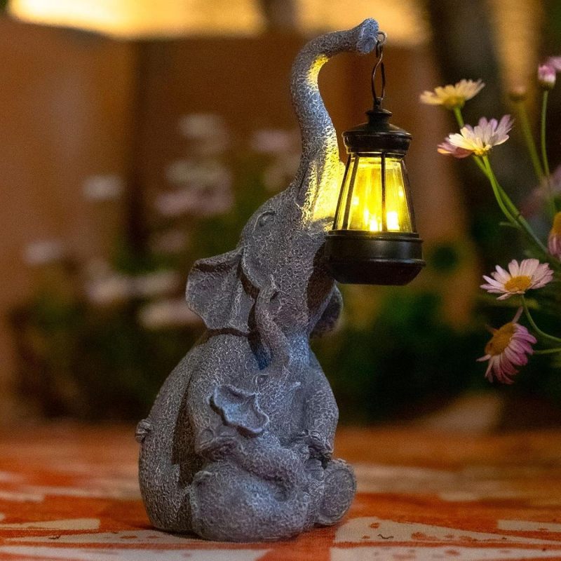 Elephant Solar Light, Solar Elephant Figurine Light, Front Porch Decor, Solar Elephant Statue, Indoor Outdoor Solar Light, Solar Powered Garden Decor, Elephant Garden Ornament