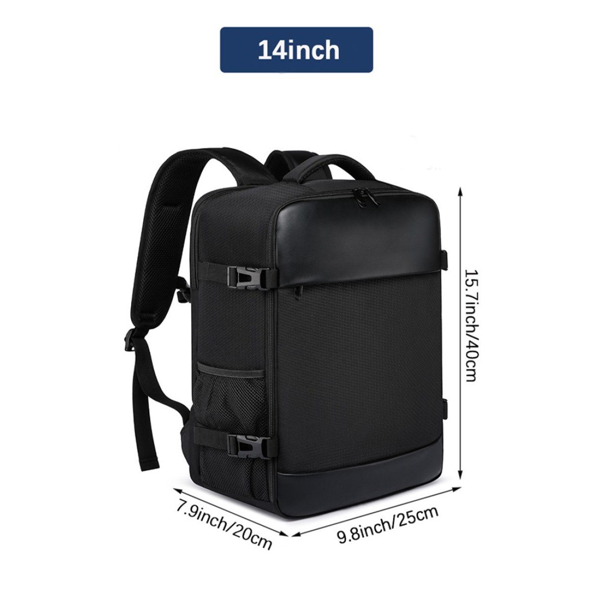 -20L large capacity design with 1 large compartment, 2 zippered mesh pockets inside, 1 zippered pocket on the front, 2 stretch pockets on the side, and 1 zippered pocket on the back.