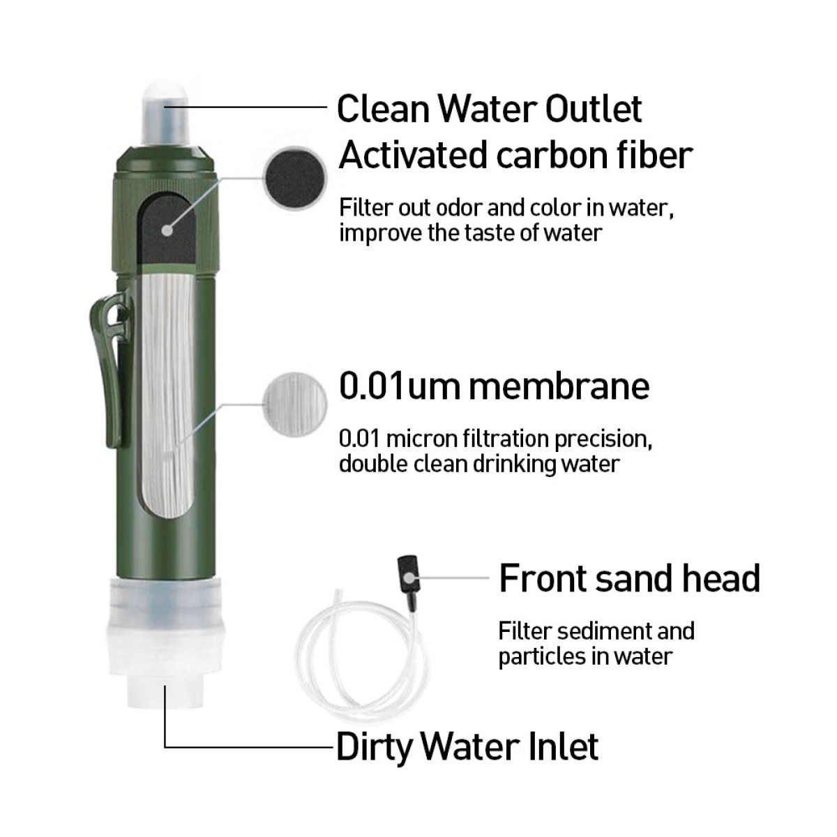 Portable Water Filter Straw Outdoor Purifier Camping Hiking Survival Emergency